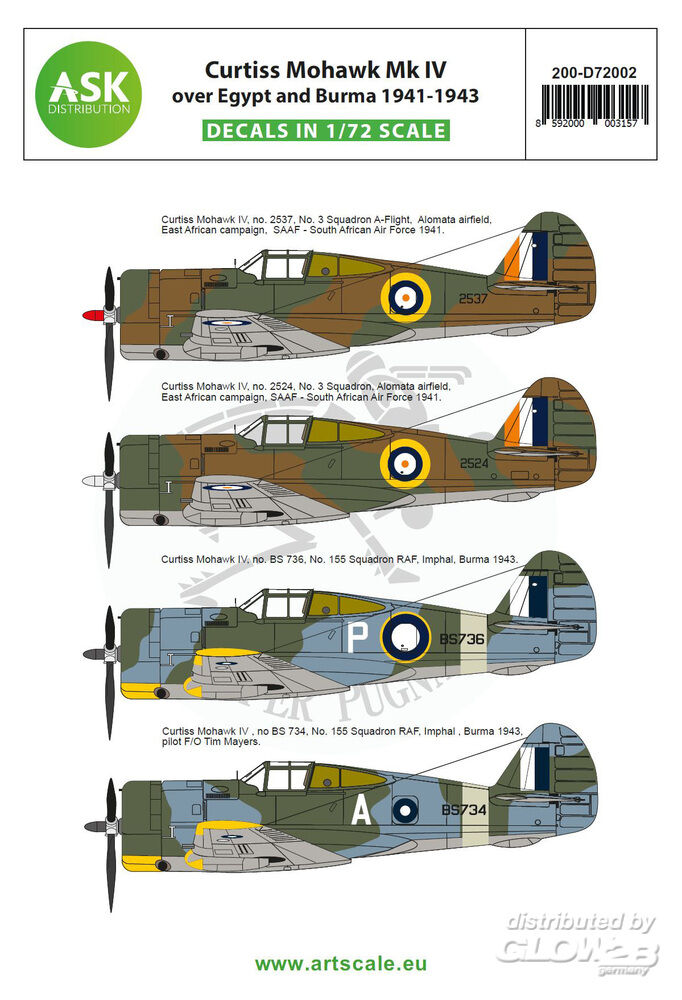 Art Scale Kit: Curtiss Mohawk IV over Egypt and Burma 1941-1943 in 1:72 [2000003157]