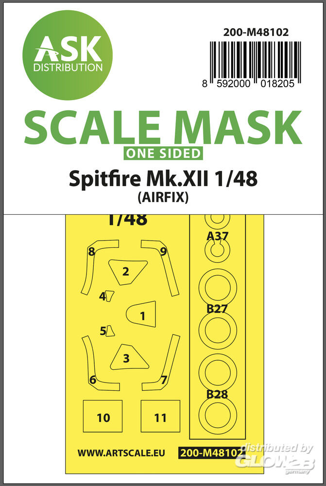 Art Scale Kit: Spitfire Mk.XII one-sided mask self-adhesive, pre-cutted for Airfix in 1:48 [2000018205]