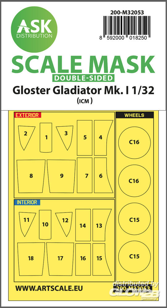 Art Scale Kit: Gloster Gladiator Mk.I double-sided painting mask for Revell / ICM in 1:32 [2000018250]