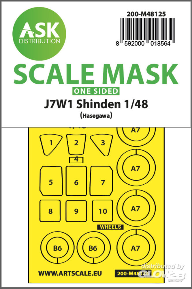 Art Scale Kit: J7W1 Shinden one-sided express mask, self-adhesive and pre-cutted for Hasegawa in 1:48 [2000018564]