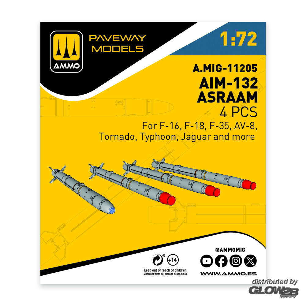 AMMO by MIG Jimenez: AIM-132 ASRAAM (4 pcs) in 1:72 [2074112051]