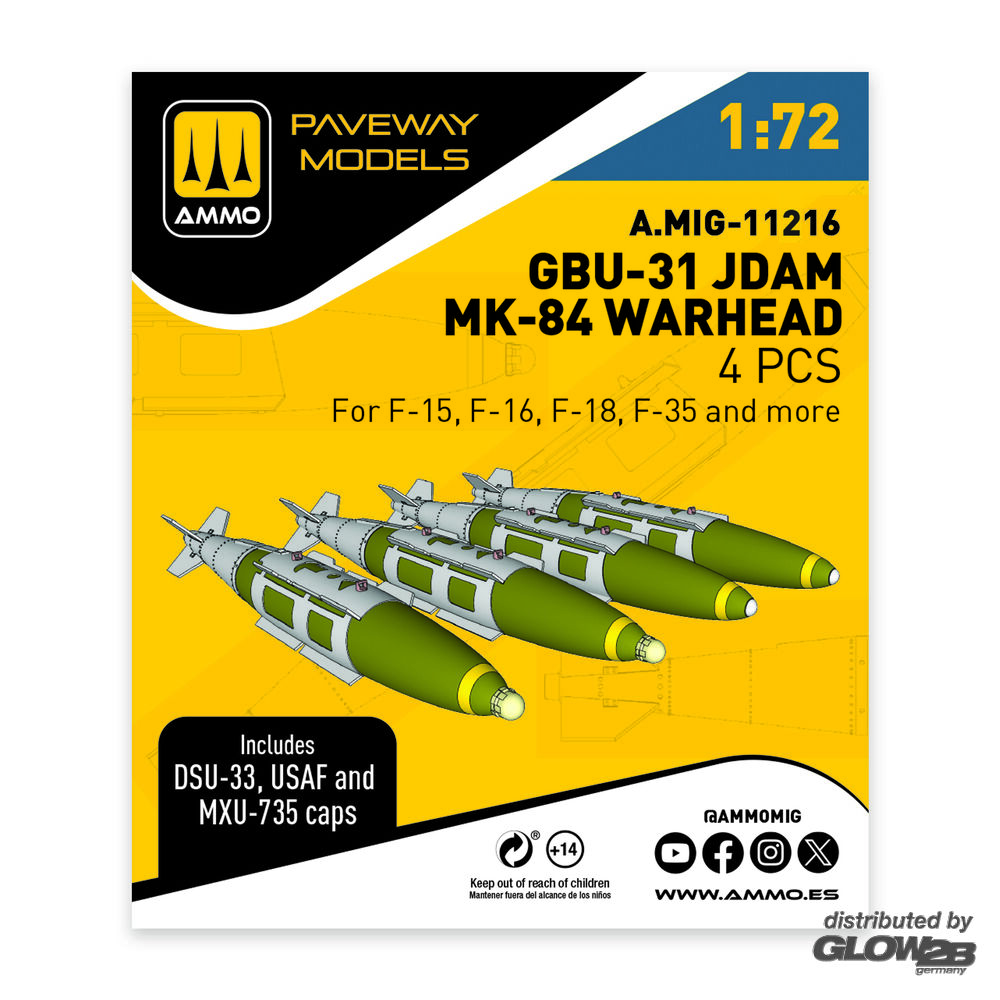 AMMO by MIG Jimenez: GBU-31 JDAM, MK-84 Warhead (4 pcs) in 1:72 [2074112167]