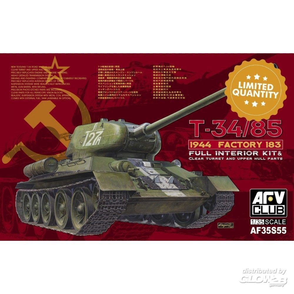AFV-Club: T-34/85 1944 Factory 183(LIMITED)w.trans transparent turret in 1:35 [2925055]