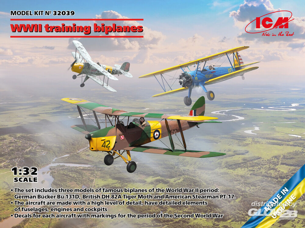ICM: WWII training biplanes (Bücker Bü 131D, DH.82A Tiger Moth, Stearman PT-17) in 1:32 [3312039]