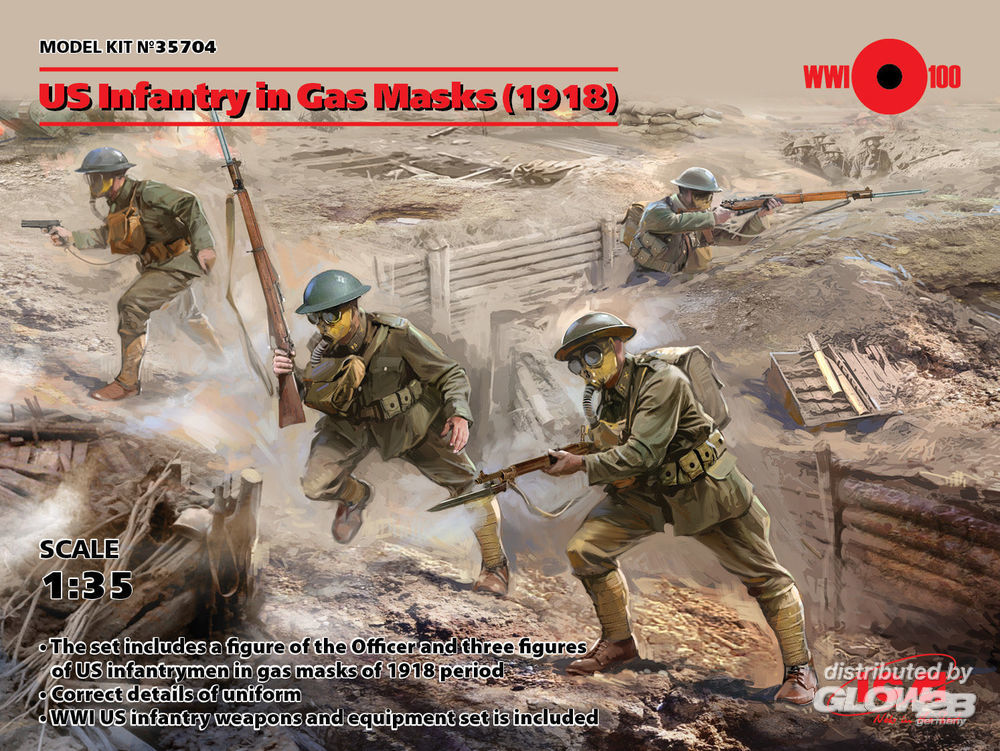 ICM: US Infantry in Gas Masks(1918)4 Figures in 1:35 [3315704]