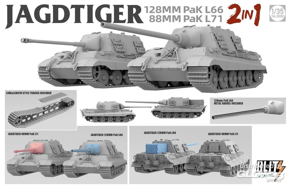 Takom: JAGDTIGER (2in1) 128MM Pak L66, 88MM Pak L71 in 1:35 [3468008]