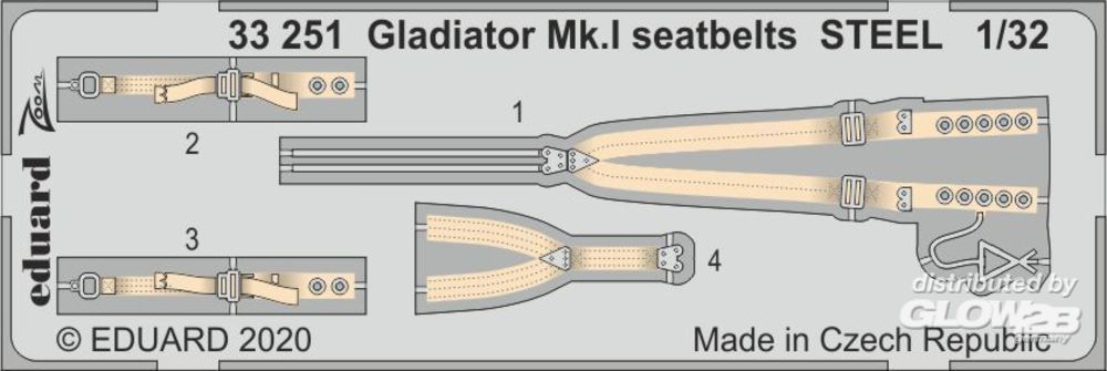 Eduard Accessories: Gladiator Mk.I seatbelts STEEL for ICM in 1:32 [3933251]