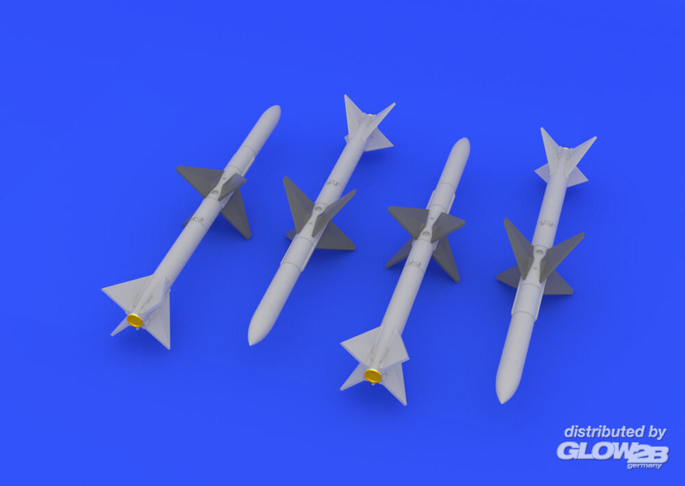 - 4 Stück semi-aktive radargesteuerte Luft-Raketen mittlerer Reichweite AIM-7E Sparrow. Fotogeätzte Details und Abziehbilder enthalten. Zusatzinformationen