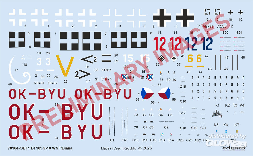 ProfiPACK edition kit of German WWII fighter aircraft Bf 109G-10 in 1/48 scale. The kit is focused on 109s produced by Wiener Neustädter Flugzeugwerke/Diana. - plastic parts: Eduard - marking options: 6 - decals: Eduard - PE parts: yes, pre-painted