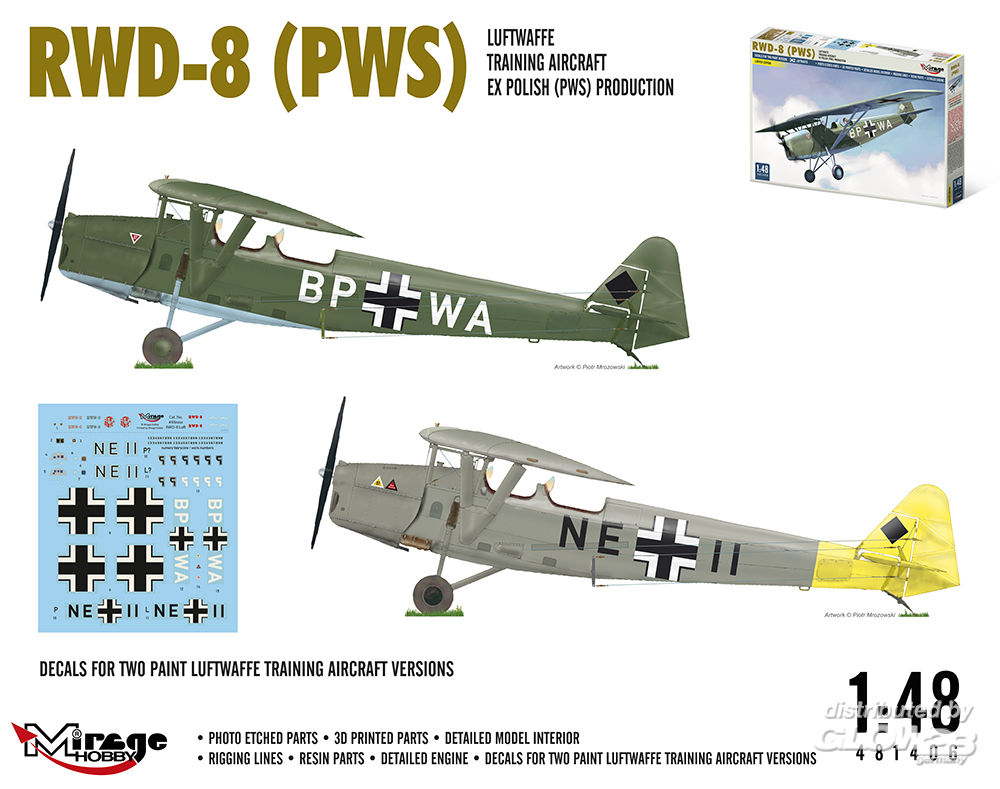 Mirage Hobby: RWD-8 (PWS) Luftwaffe training aircraft ex Polisch Produktion in 1:48 [4081406]