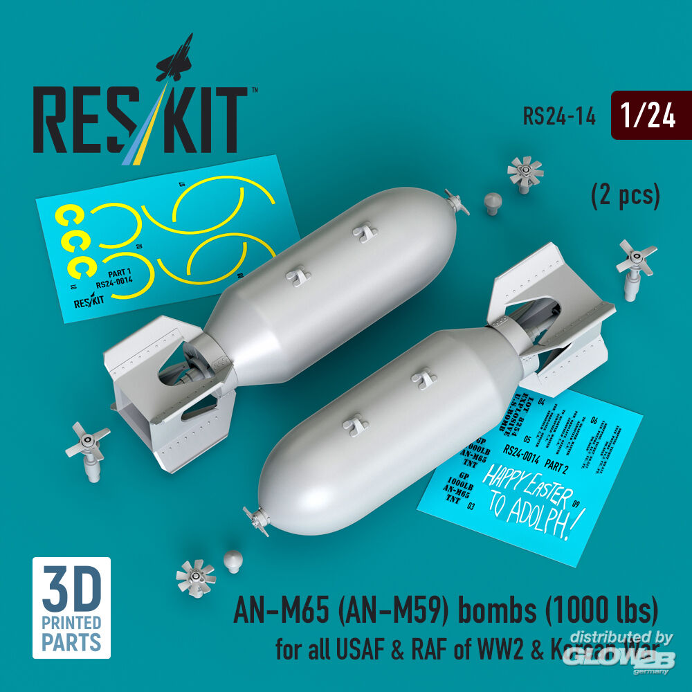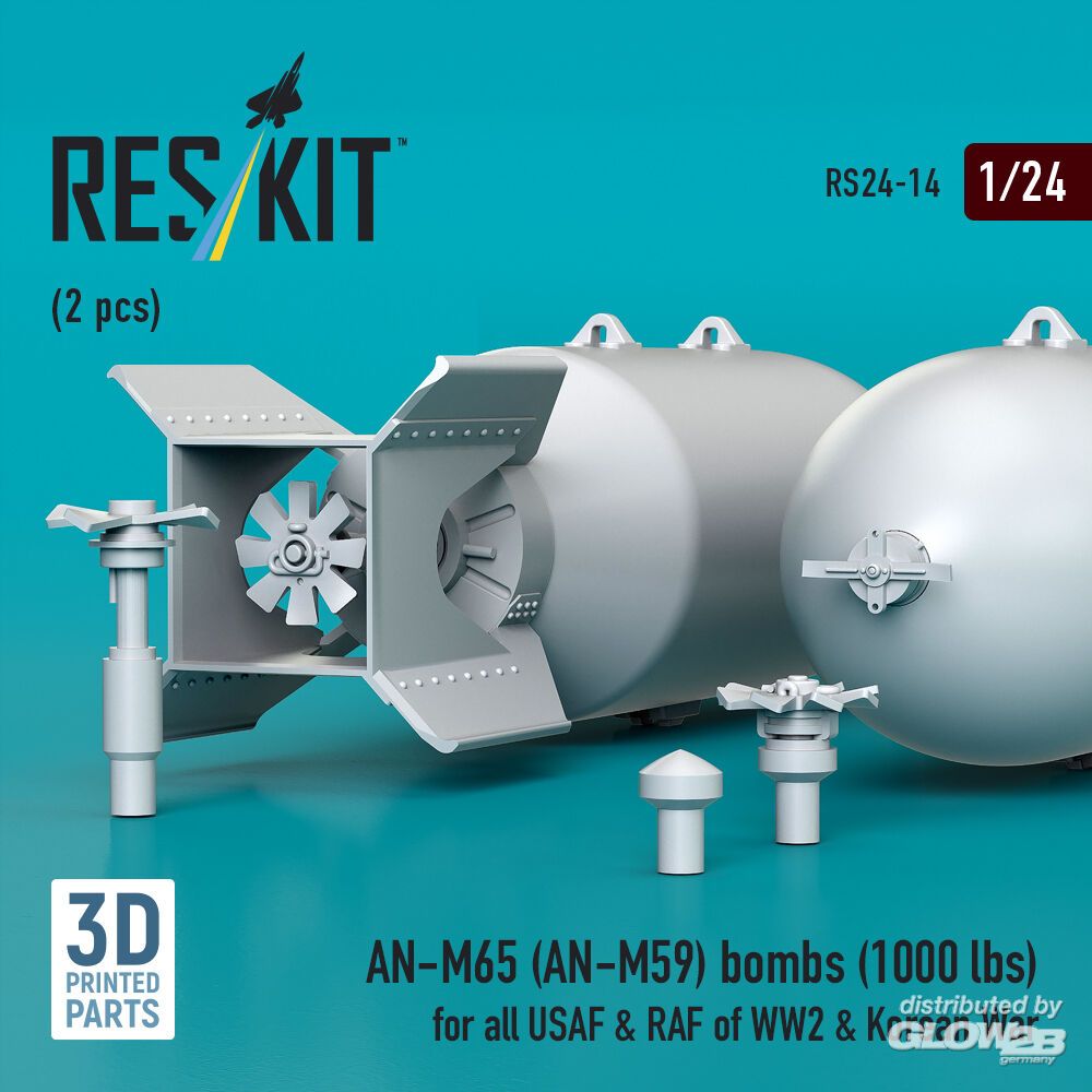 RESKIT Models: AN-M65 (AN-M59) bombs (1000 lbs) for all USAF & RAF of WW2 & Korean War (2 pcs) (3D Printed) in 1:24 [4591100149]