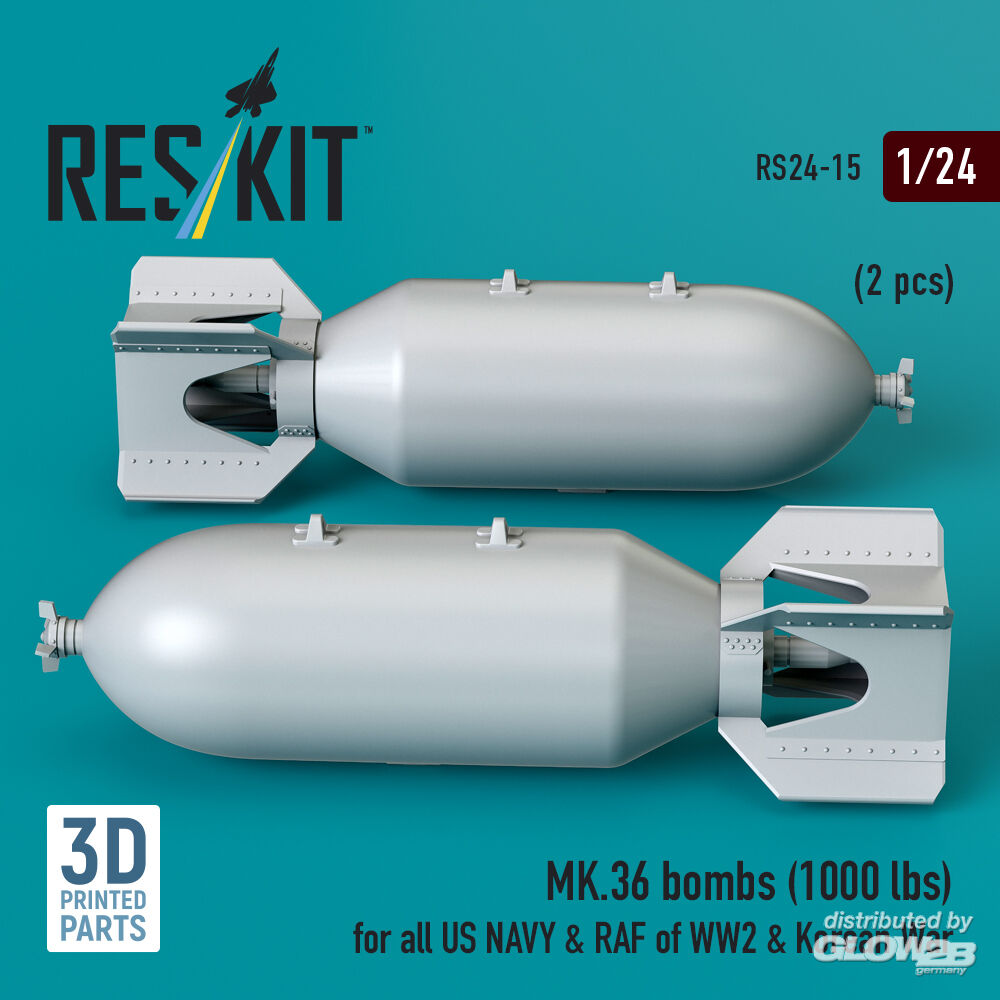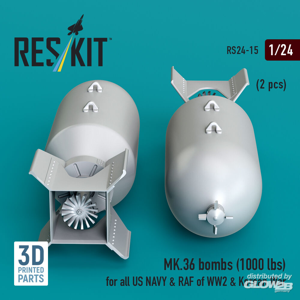 RESKIT Models: MK.36 bombs (1000 lbs) for all US NAVY & RAF of WW2 & Korean War (2 pcs) (3D Printed) in 1:24 [4591100156]