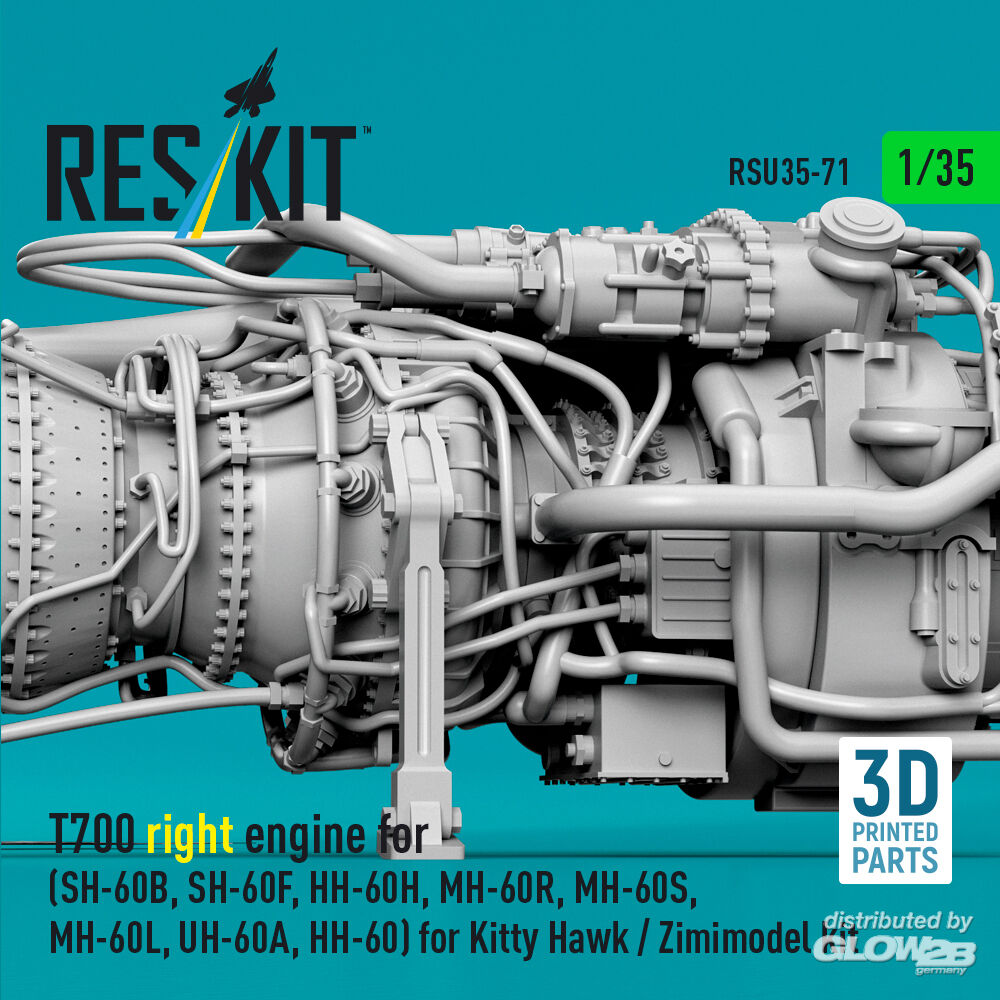 RESKIT Models: T700 right engine (SH-60B, SH-60F, HH-60H, MH-60R, MH-60S, MH-60L, UH-60A, HH-60) for Kitty Hawk / Zimimodel kit (3D Printed) in 1:35 [4592200718]