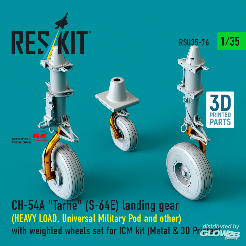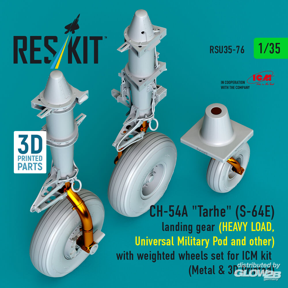 RESKIT Models: CH-54A Tarhe(S-64E) landing gear (HEAVY LOAD, Universal Military Pod and other) with weighted wheels set for ICM kit (Metal & 3D Printed) in 1:35 [4592300760]