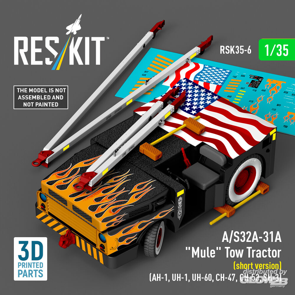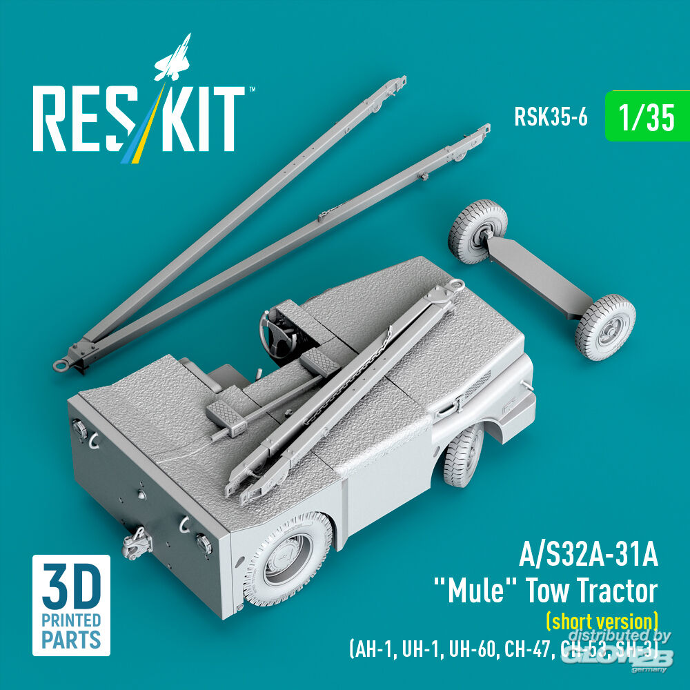 RESKIT Models: A/S32A-31A Mule Tow Tractor (short version) (AH-1, UH-1, UH-60, CH-47, CH-53, SH-3) (3D Printed model kit) in 1:35 [4592700065]