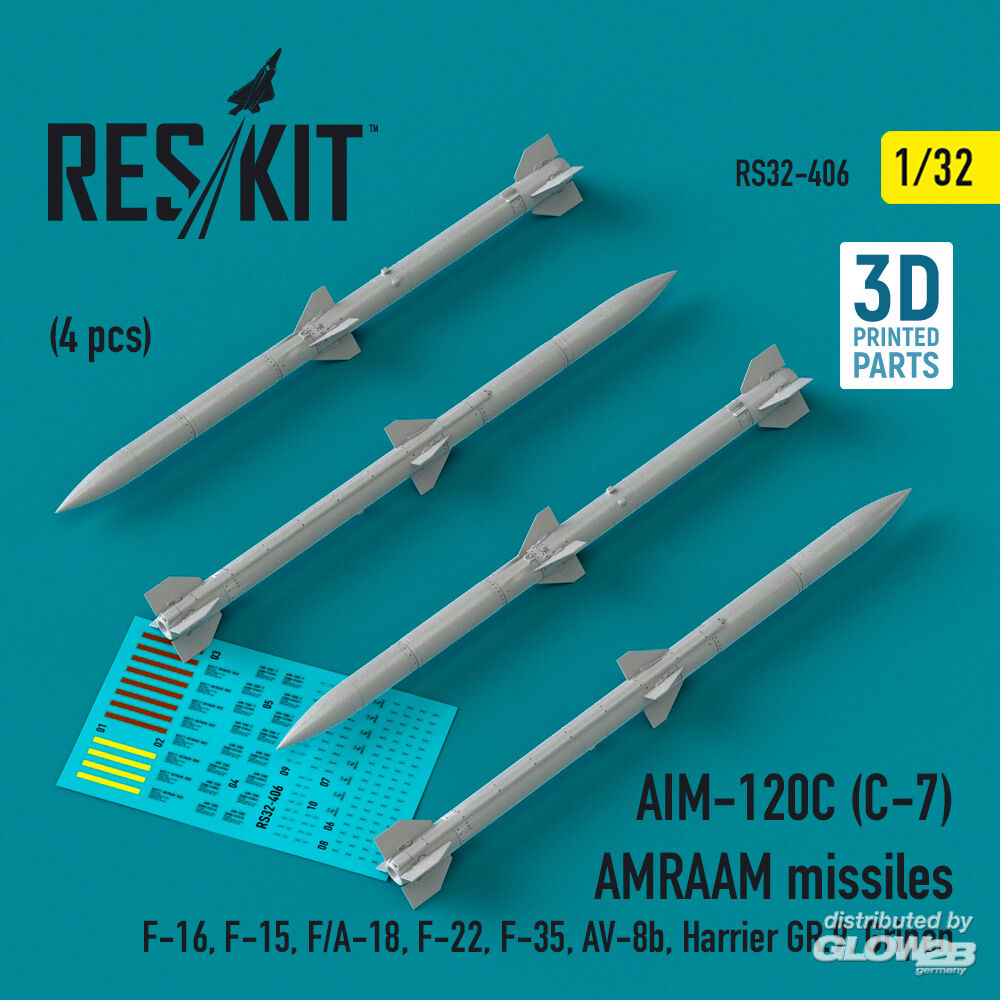 ResKit Models: AIM-120C (C-7) AMRAAM missiles (4 pcs) (F-16, F-15, F/A-18, F-22, F-35, AV-8b, Harrier GR.9, Gripen) (3D Printed) in 1:32 [4593104060]