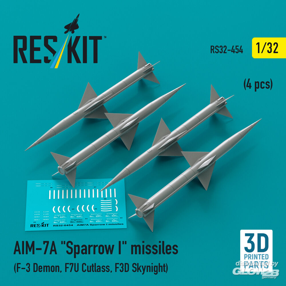 ResKit Models: AIM-7A Sparrow I missiles (4 pcs) (F-3 Demon, F7U Cutlass, F3D Skynight) (3D Printed) in 1:32 [4593104541]