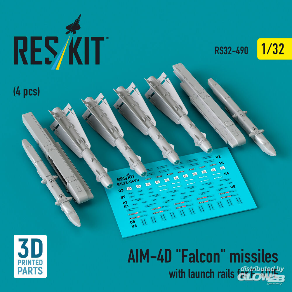 ResKit Models: AIM-4D Falcon missiles with launch rails for F-4D/E (4 pcs) (3D Printed) in 1:32 [4593104909]