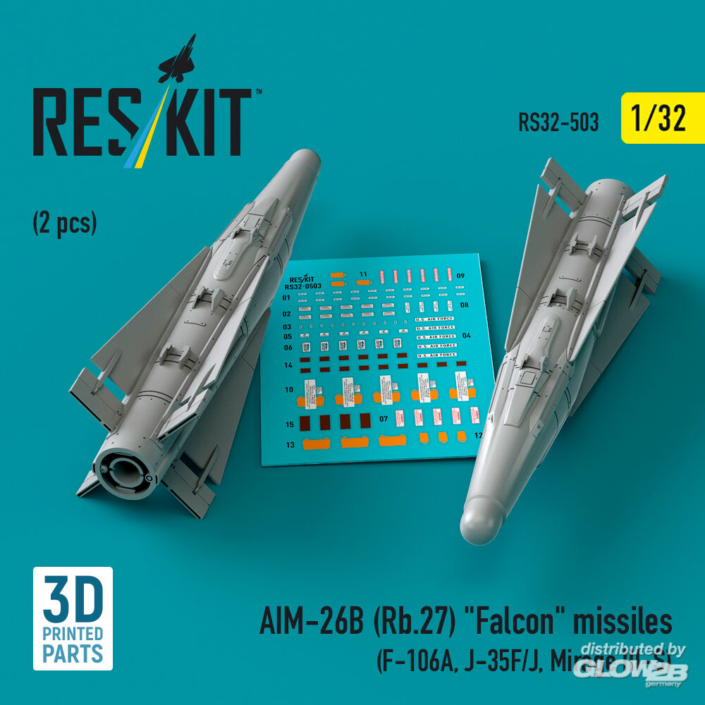ResKit Models: AIM-26B (Rb.27) Falcon missiles (2 pcs) (F-106A, J-35F/J, Mirage III-S) (3D Printed) in 1:32 [4593105036]