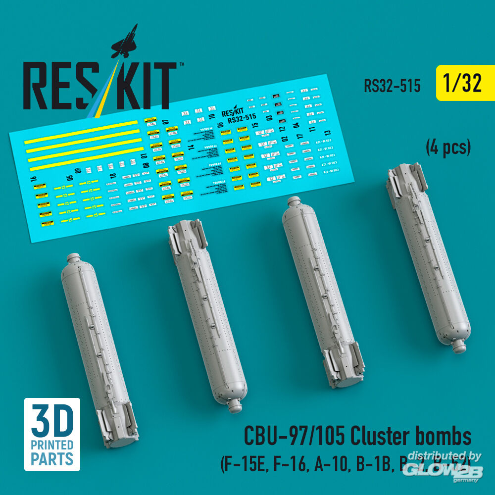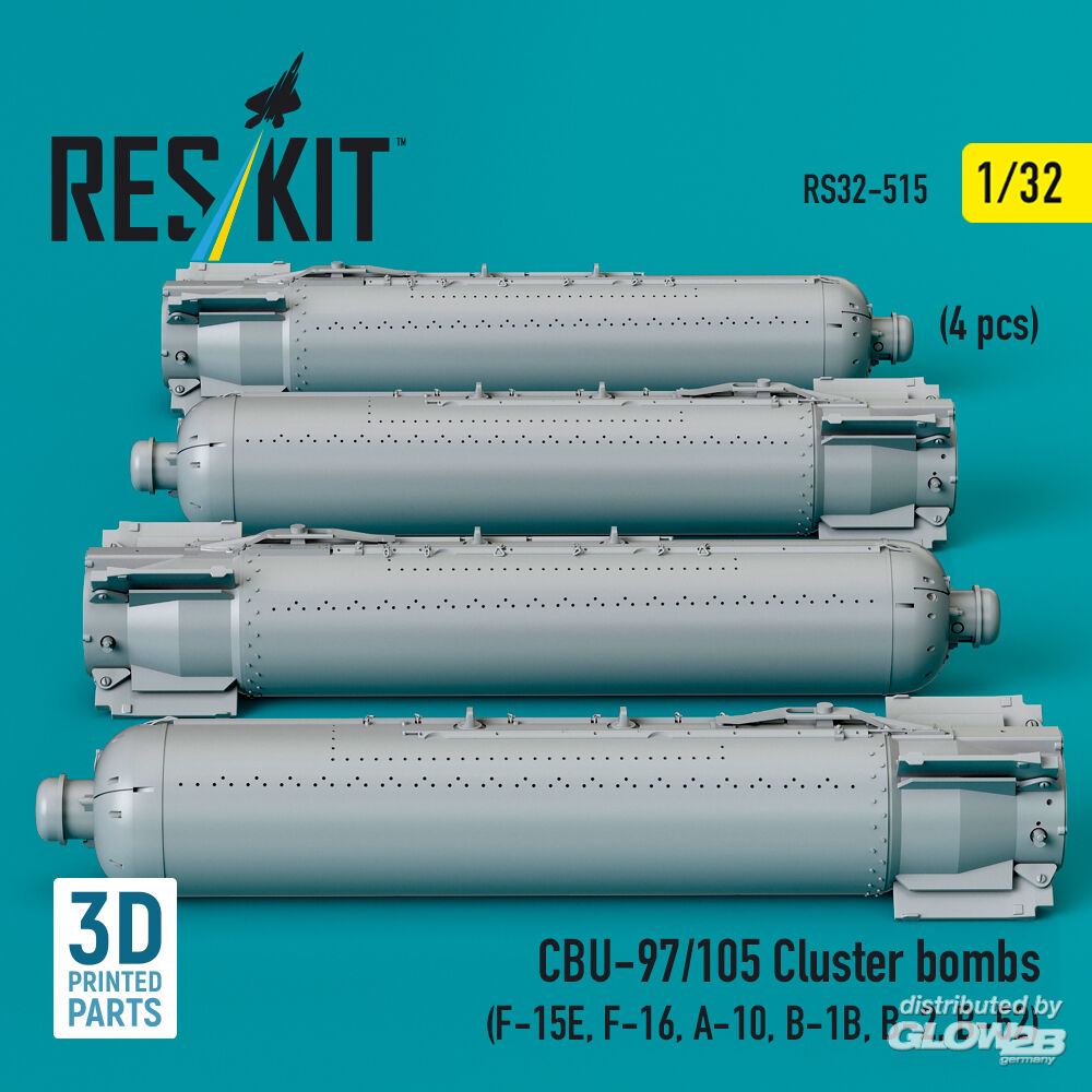 ResKit Models: CBU-97/105 cluster bombs (4 pcs) (F-15E, F-16, A-10, B-1B, B-2, B-52) (3D Printed) in 1:32 [4593105159]