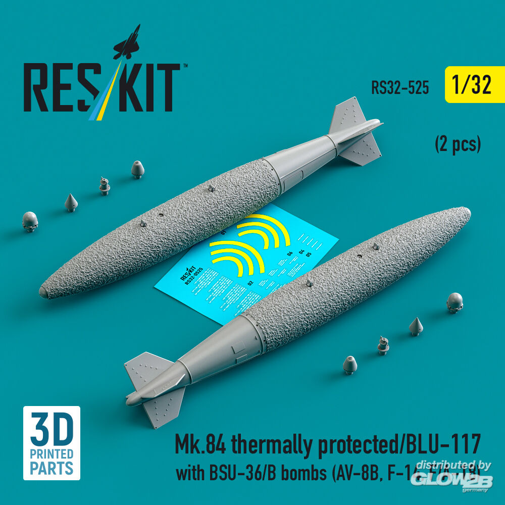 ResKit Models: Mk.84 thermally protected/BLU-117 with BSU-36/B bombs (2 pcs) (AV-8B, F-14, F/A-18) (3D Printed) in 1:32 [4593105258]