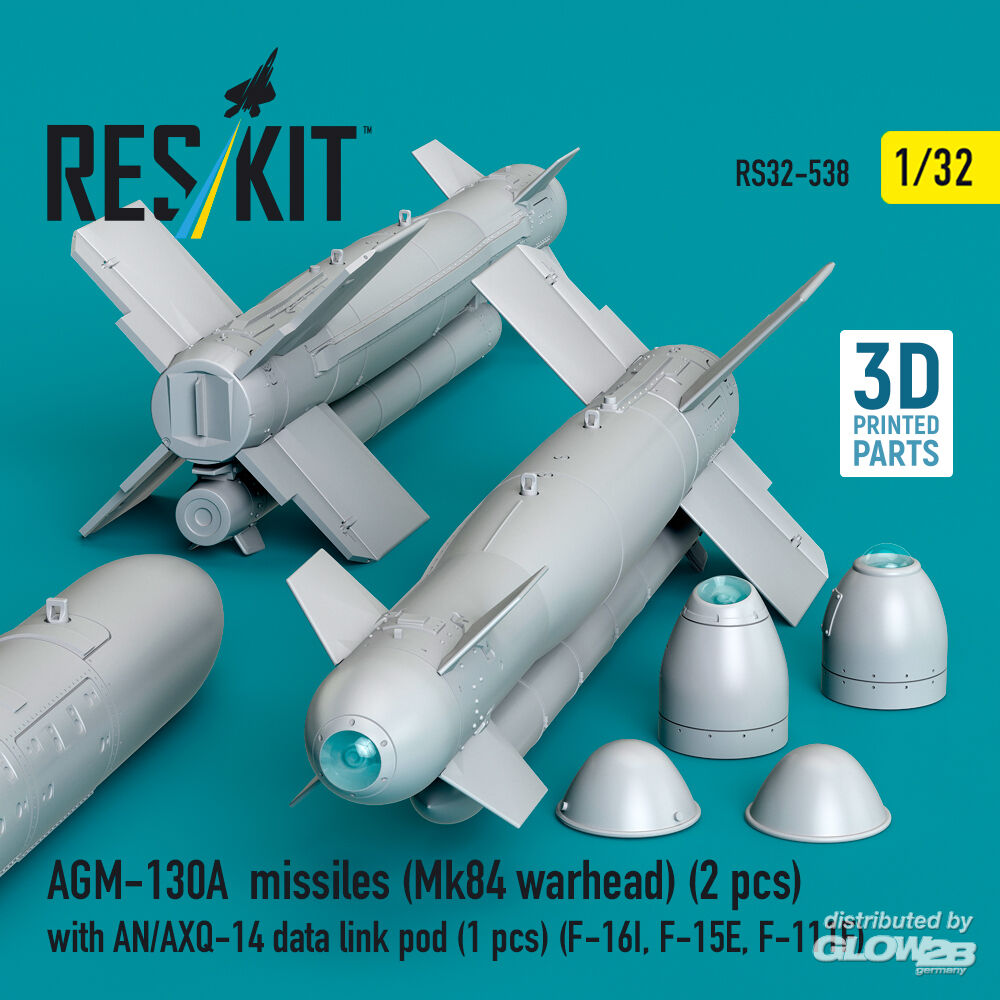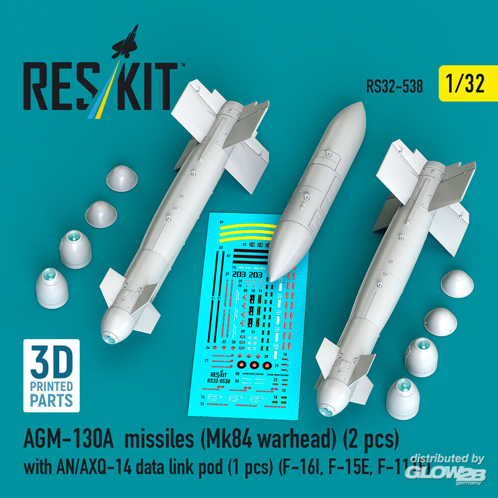 ResKit Models: AGM-130A missiles (Mk84 warhead) (2 pcs) with AN/AXQ-14 data link pod (1 pcs) (F-16I, F-15E, F-111F) (3D Printed) in 1:32 [4593105388]