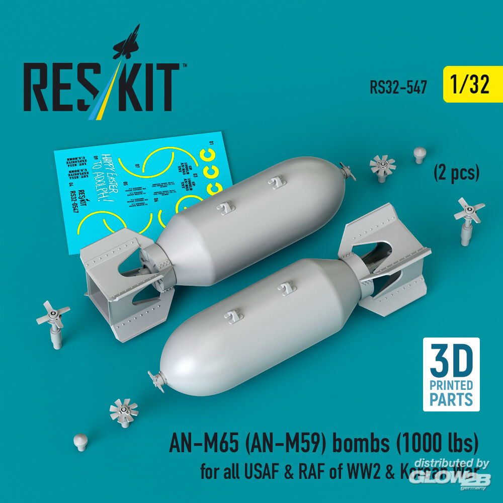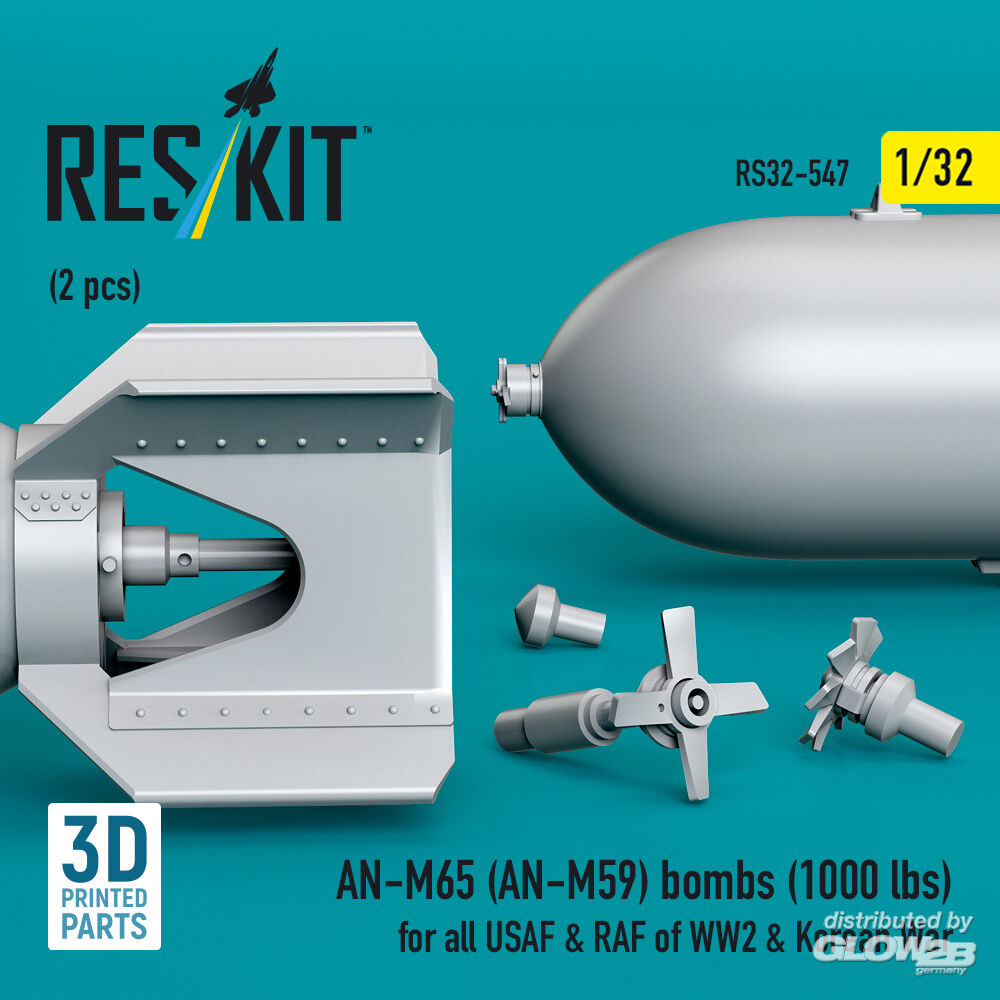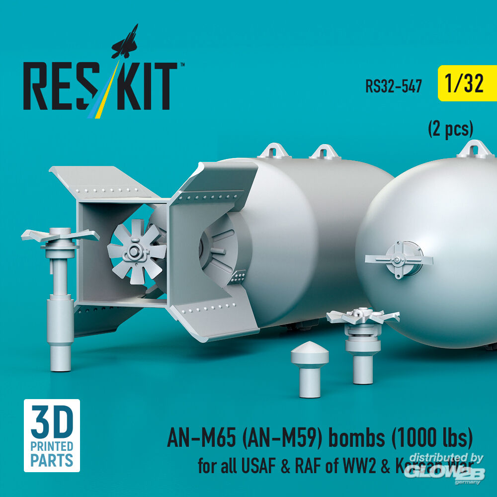 ResKit Models: AN-M65 (AN-M59) bombs (1000 lbs) for all USAF & RAF of WW2 & Korean War (2 pcs) (3D Printed) in 1:32 [4593105470]