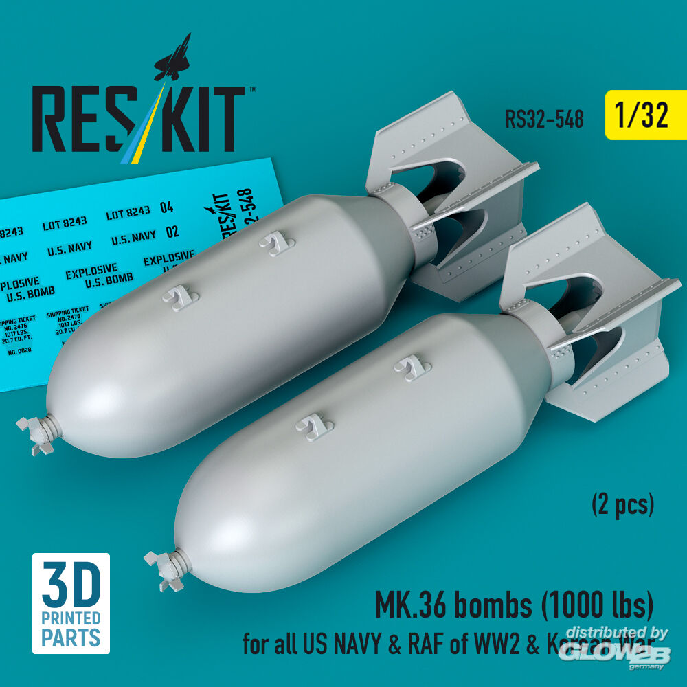 ResKit Models: MK.36 bombs (1000 lbs) for all US NAVY & RAF of WW2 & Korean War (2 pcs) (3D Printed) in 1:32 [4593105487]