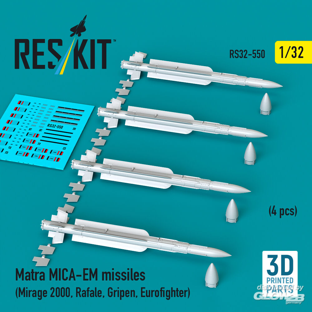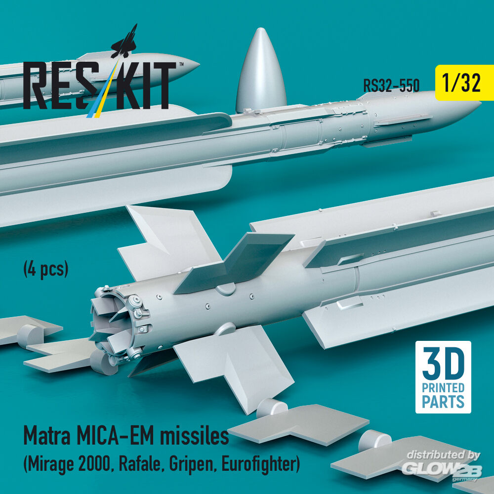 ResKit Models: Matra MICA-EM missiles (4 pcs) (Mirage 2000, Rafale, Gripen, Eurofighter) (3D Printed) in 1:32 [4593105500]