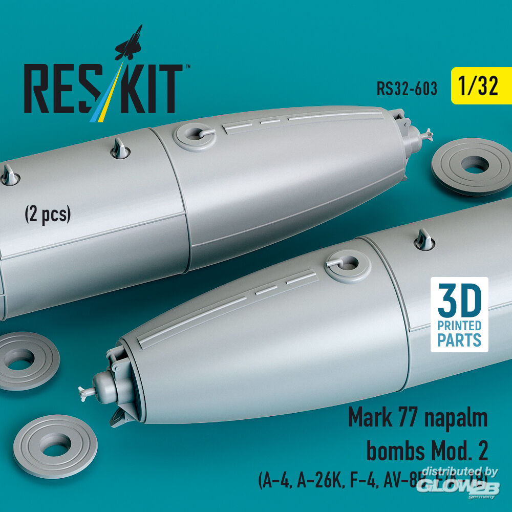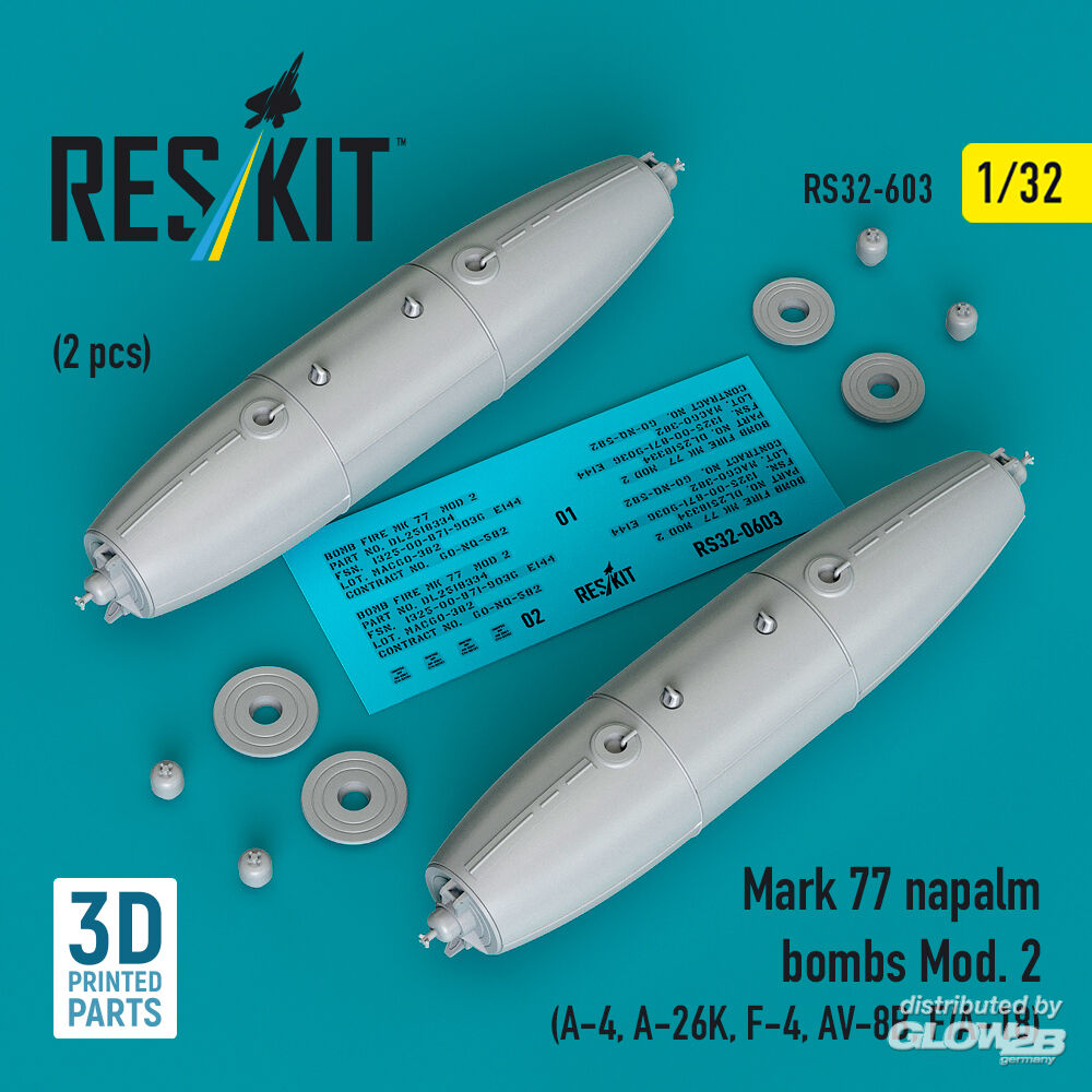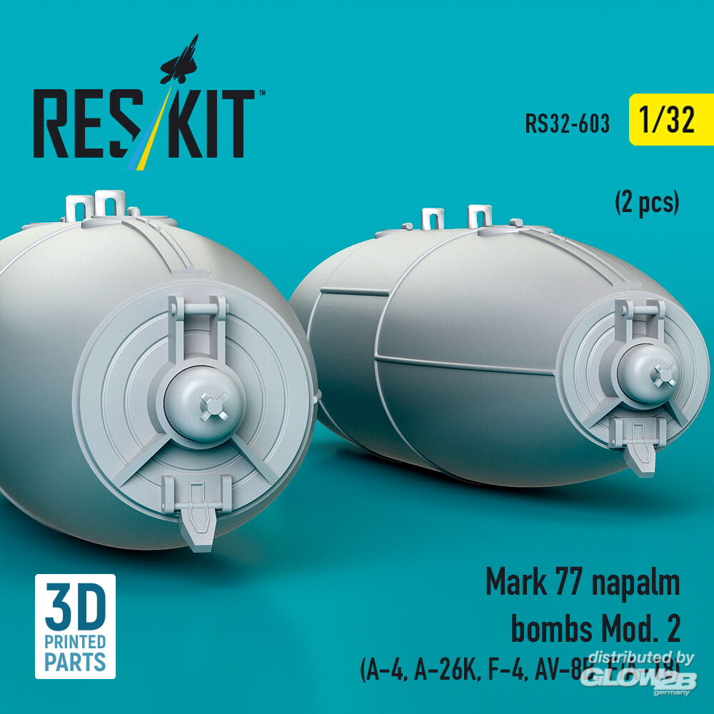 ResKit Models: Mark 77 napalm bombs Mod.2 (2pcs) (A-4, A-26K, F-4, AV-8B, F/A-18) (3D Printed) in 1:32 [4593106033]