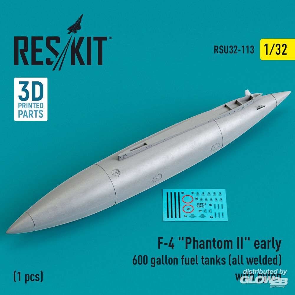 ResKit Models: F-4 Phantom II early 600 gallon fuel tanks (all welded) with pylon (1 pcs) (3D Printed) in 1:32 [4593201134]