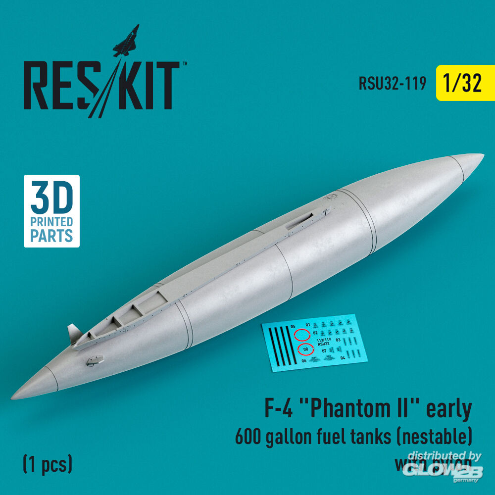 ResKit Models: F-4 Phantom II early 600 gallon fuel tanks (nestable) with pylon (1 pcs) (3D Printed) in 1:32 [4593201196]