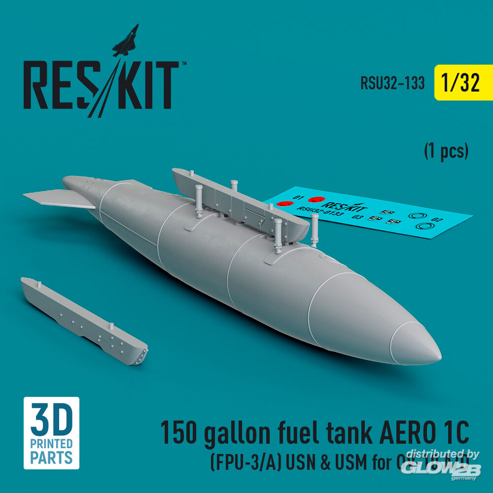 ResKit Models: 150 gallon fuel tank AERO 1C (FPU-3/A) USN & USM for OV-10 A/D (1 pcs) (3D Printed) in 1:32 [4593201332]