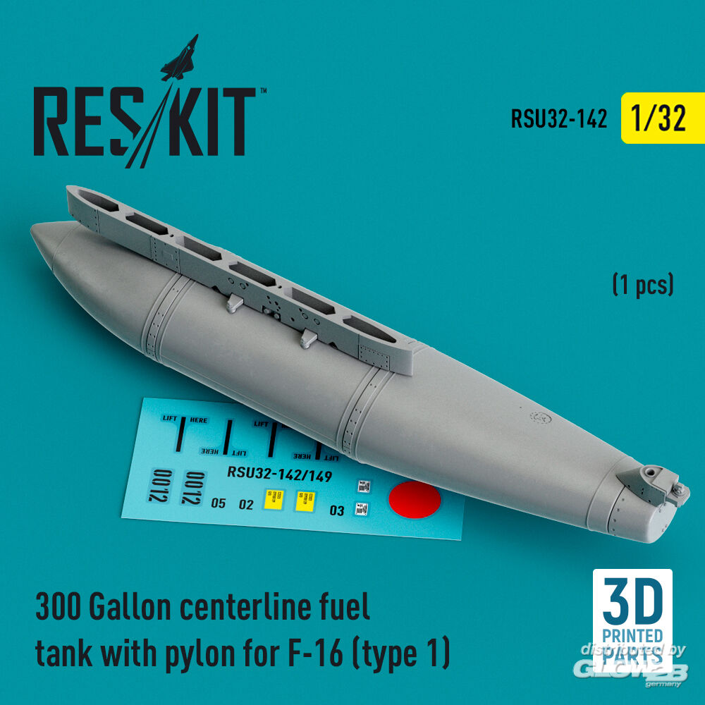 ResKit Models: 300 Gallon centerline fuel tank with pylon for F-16 (A/B/C/D/E/F/I) (type 1) (1 pcs) (3D Printed) in 1:32 [4593201424]