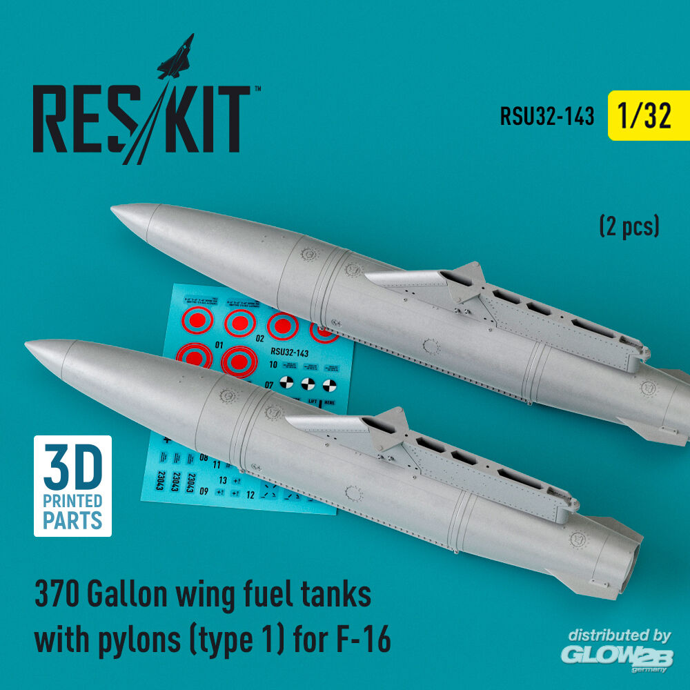 ResKit Models: 370 Gallon wing fuel tanks with pylons (type 1) for F-16 (A/B/C/D/E/F/I) (2 pcs) (3D Printed) in 1:32 [4593201431]