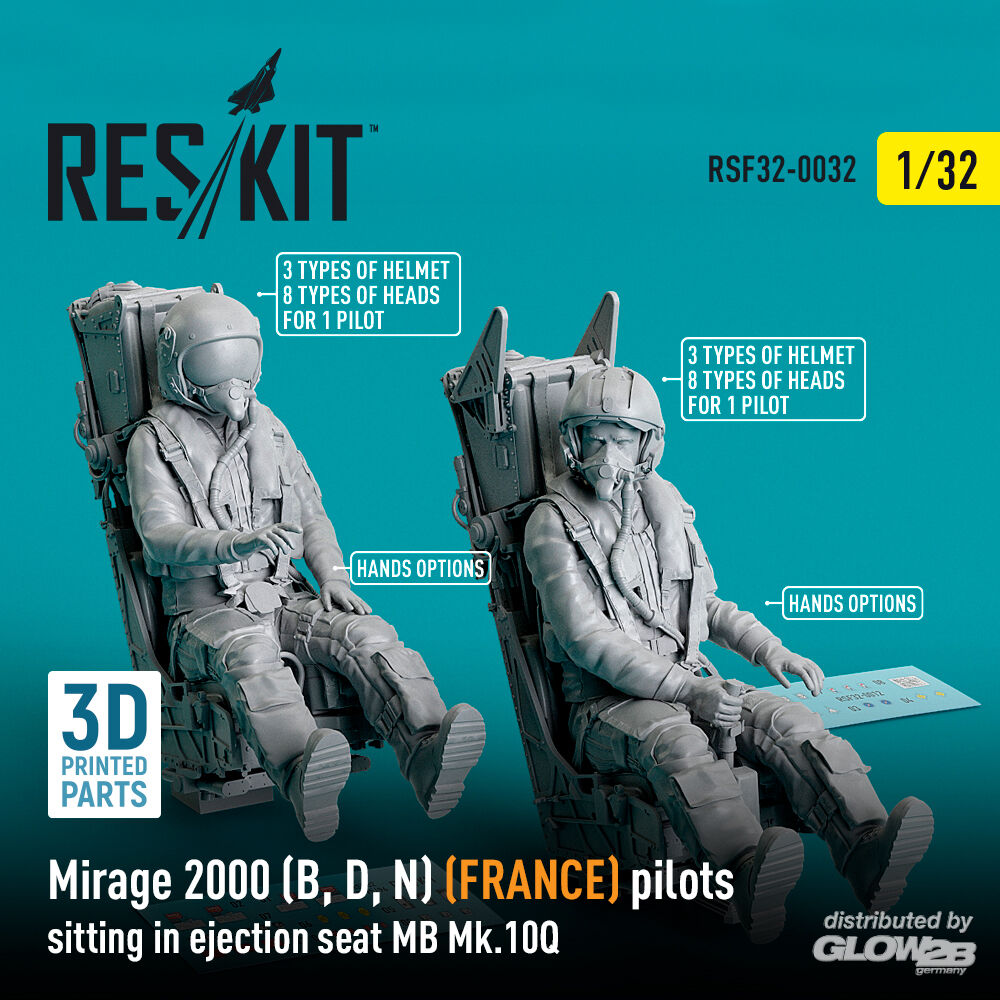 ResKit Models: Mirage 2000 (B, D, N) (FRANCE) pilots sitting in ejection seat MB Mk.10Q (2 pcs) (3D Printed) in 1:32 [4593400322]