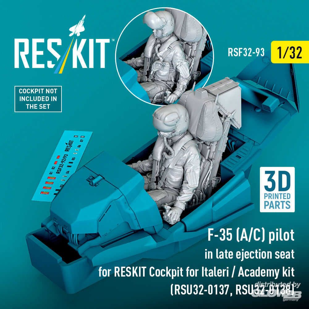 ResKit Models: F-35 (A/C) pilot in late ejection seat for RESKIT Cockpit for Italeri / Academy kit (RSU32-0137, RSU32-0138) (3D Printed) in 1:32 [4593400933]