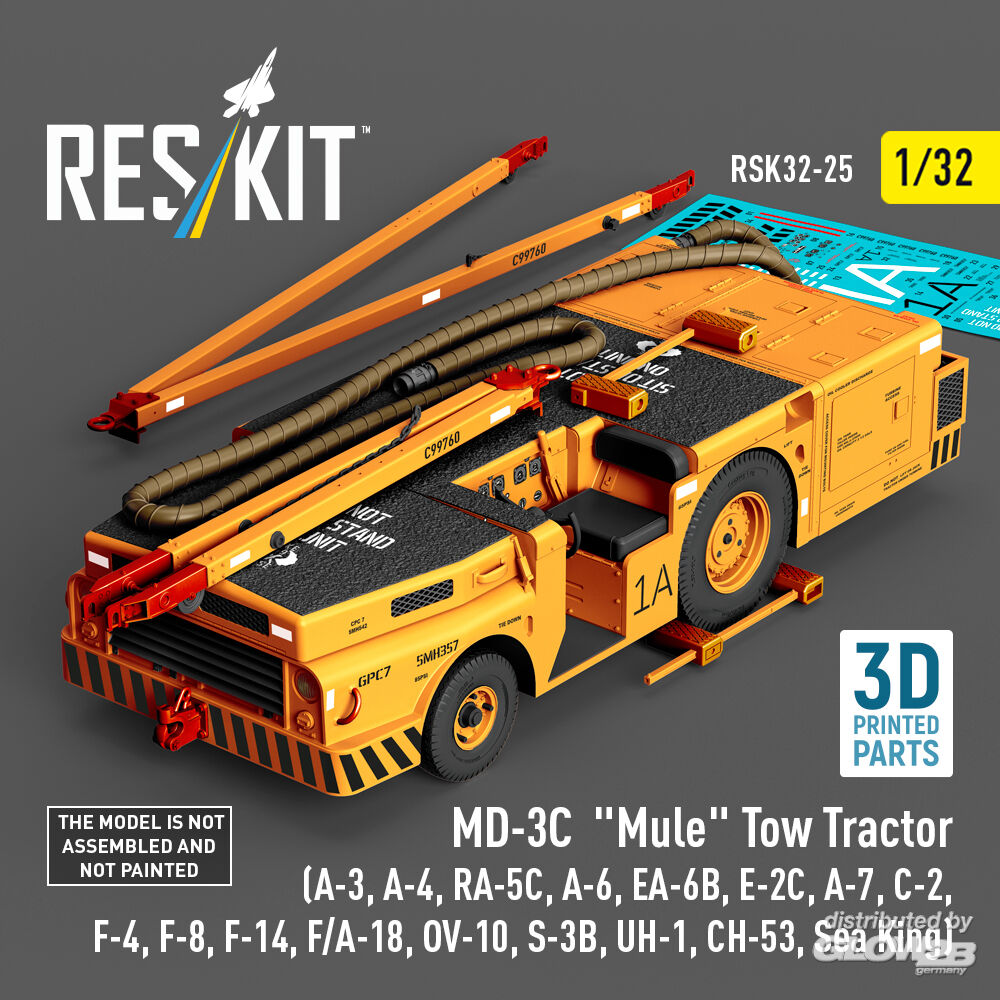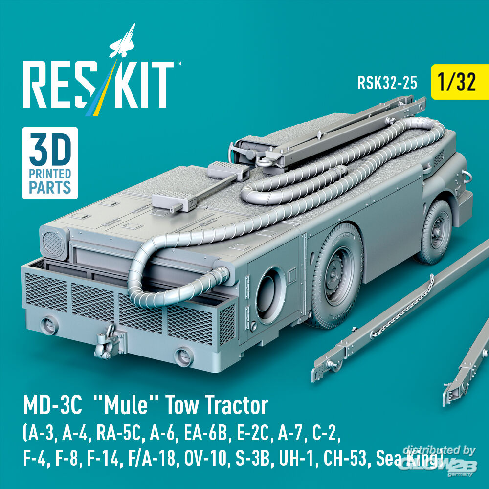 ResKit Models: MD-3? Mule Tow Tractor (A-3, A-4, RA-5C, A-6, EA-6B, E-2C, A-7, C-2, F-4, F-8, F-14, F/A-18, OV-10, S-3B, UH-1, CH-53, Sea King) (3D Printed model kit) in 1:32 [4593700255]