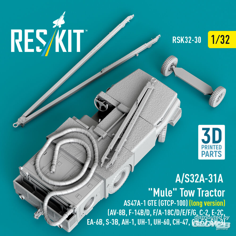 ResKit Models: A/S32A-31A Mule Tow Tractor AS47A-1 GTE (GTCP-100) (long version) (AV-8B, F-14B/D, F/A-18C/D/E/F/G, C-2, E-2?, EA-6B, S-3B, AH-1, UH-1, UH-60, CH-47, CH-53, SH-3) (3D Printed model kit) in 1:32 [4593700309]