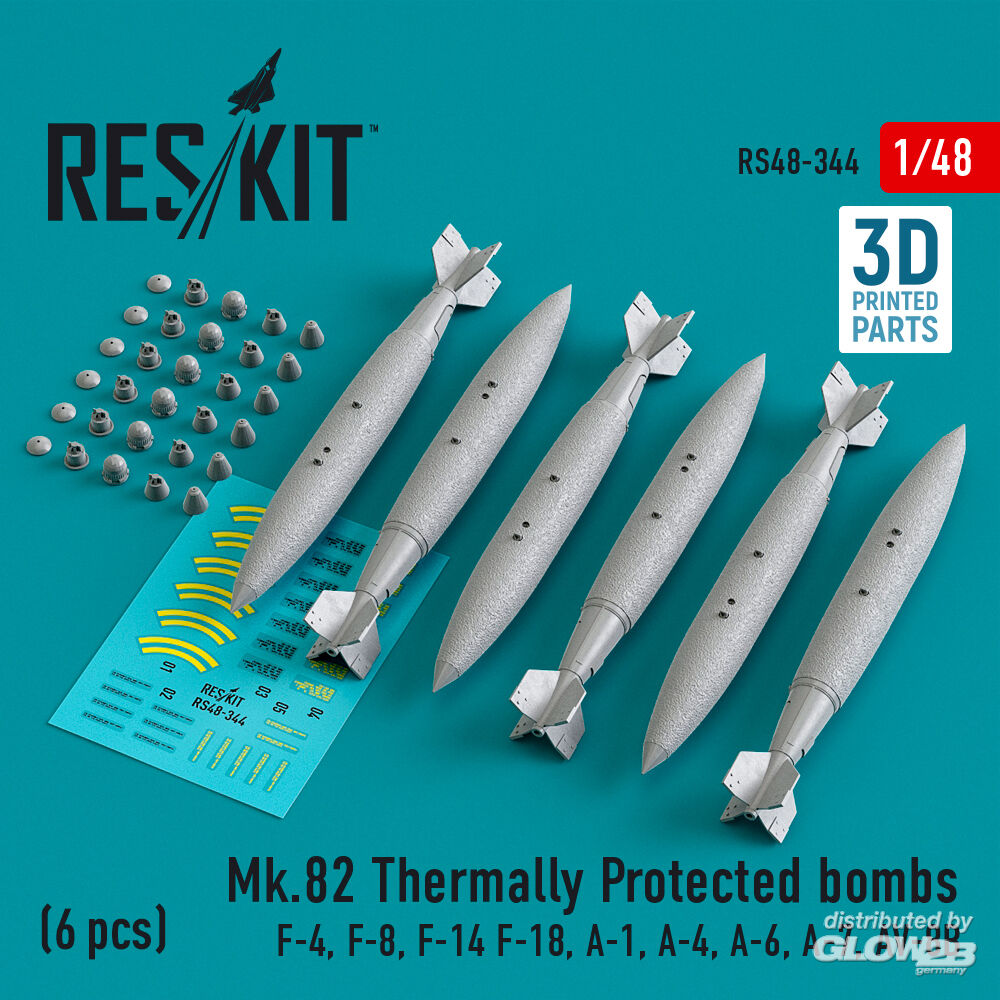 ResKit Models: Mk.82 thermally protected bombs (6 pcs) (F-4, F-8, F-14 F-18, A-1, A-4, A-6, A-7, AV-8B) (3D Printed) in 1:48 [4594103444]