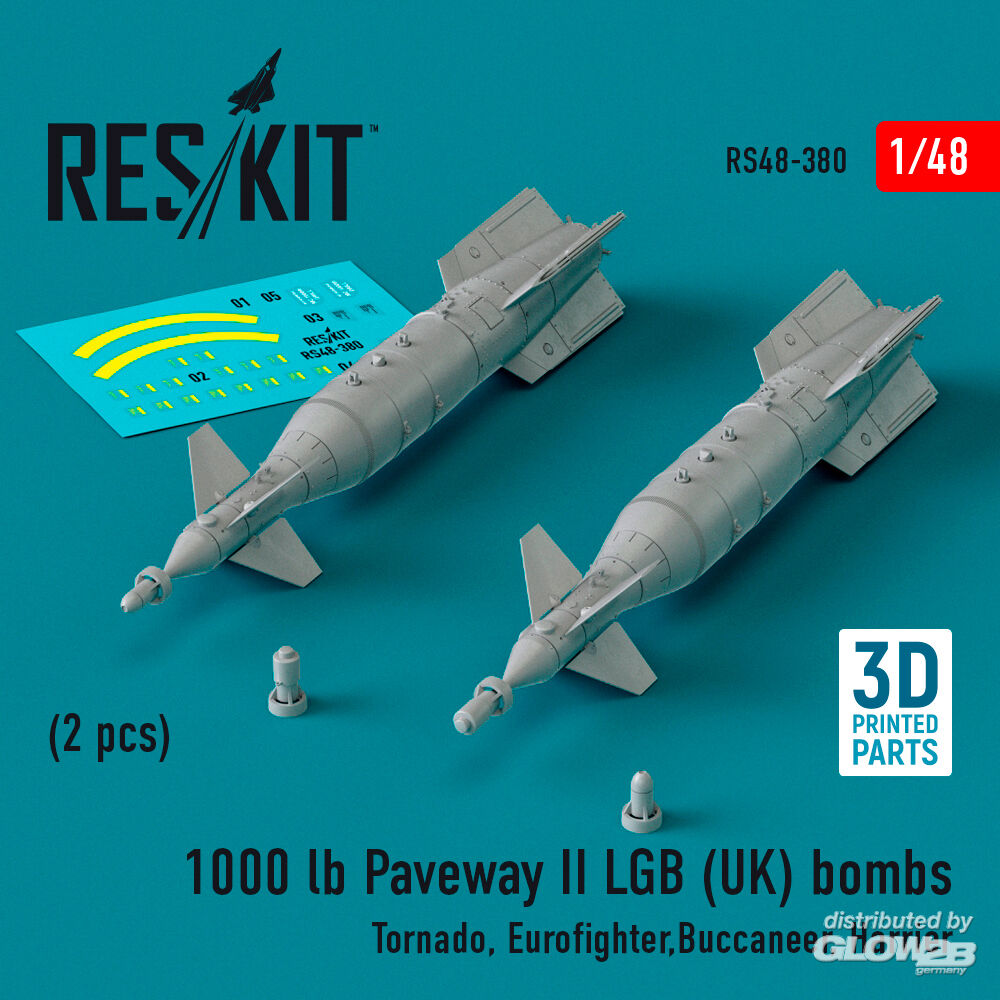 ResKit Models: 1000 lb Paveway II LGB (UK) bombs (2 pcs) (Tornado, Eurofighter,Buccaneer, Harrier) (3D Printed) in 1:48 [4594103802]