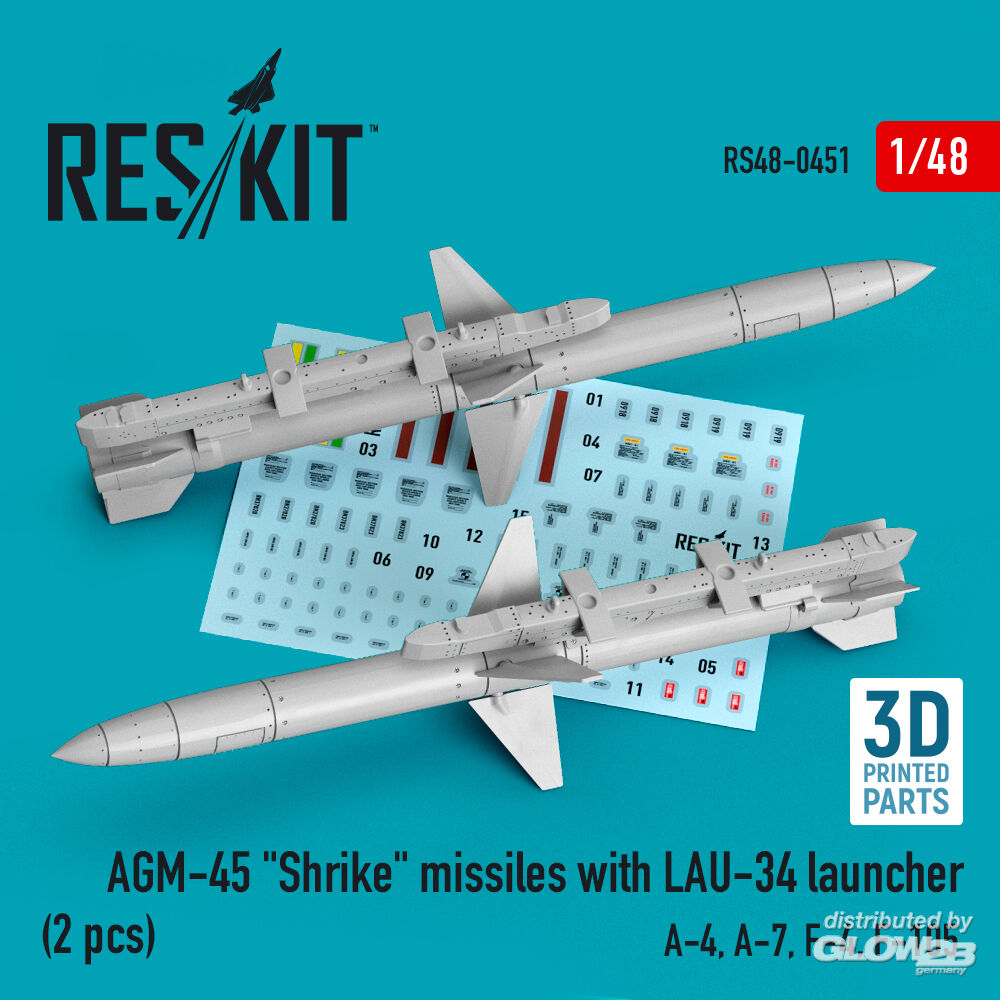 ResKit Models: AGM-45 Shrike missiles with LAU-34 launcher (2 pcs) (A-4, A-7, F-4, F-105) (3D Printed) in 1:48 [4594104519]