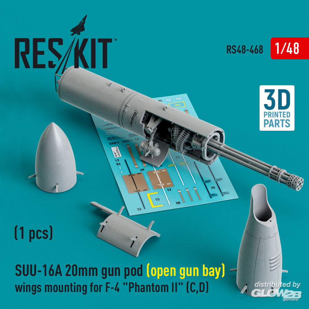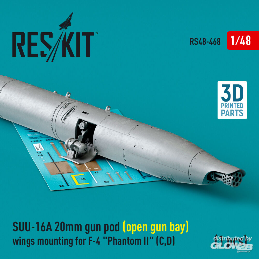 ResKit Models: SUU-16A 20mm gun pod (open gun bay) wings mounting for F-4 Phantom II (C,D) (1 pcs) (3D Printed) in 1:48 [4594104687]