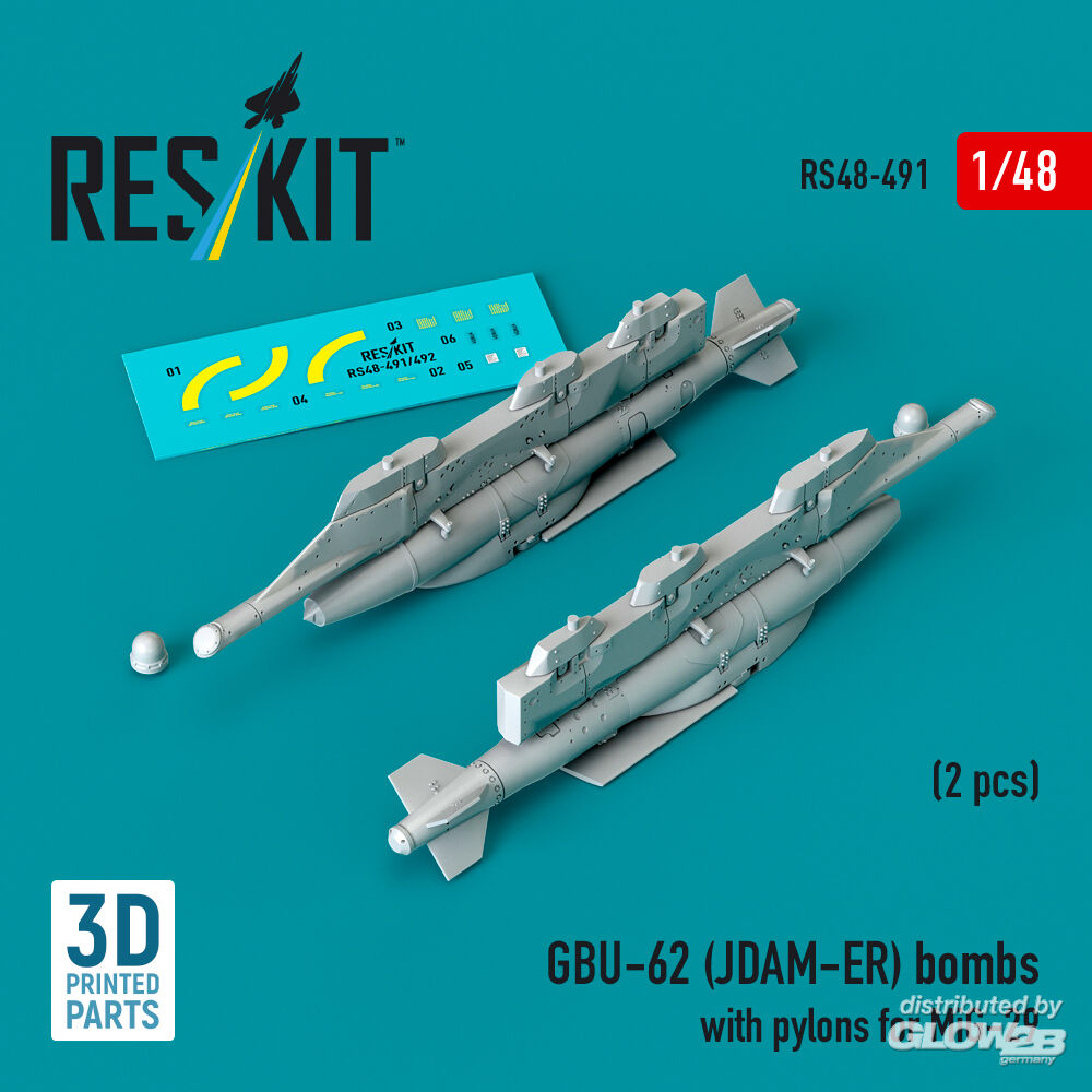 ResKit Models: GBU-62 (JDAM-ER) bombs with pylons for MiG-29 Fulcrum (2 pcs) (3D Printed) in 1:48 [4594104915]
