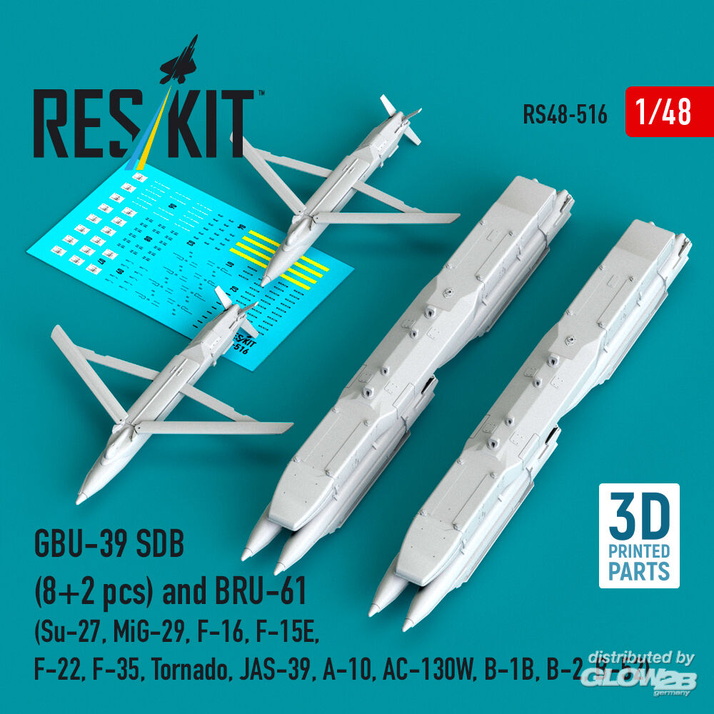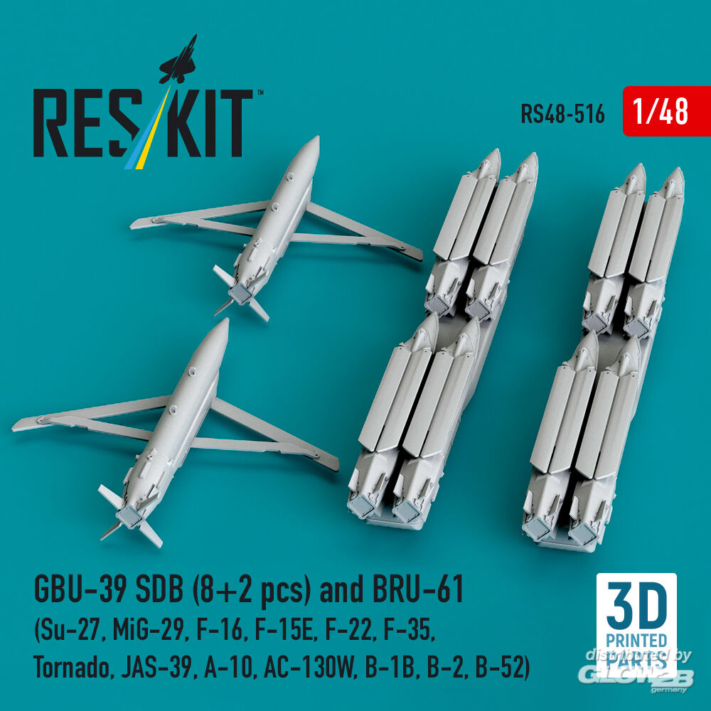 ResKit Models: GBU-39 SDB (8 pcs) and BRU-61 (2 pcs) (Su-27, MiG-29, F-16, F-15E, F-22, F-35, Tornado, JAS-39, A-10, AC-130W, B-1B, B-2, B-52) (3D Printed) in 1:48 [4594105165]