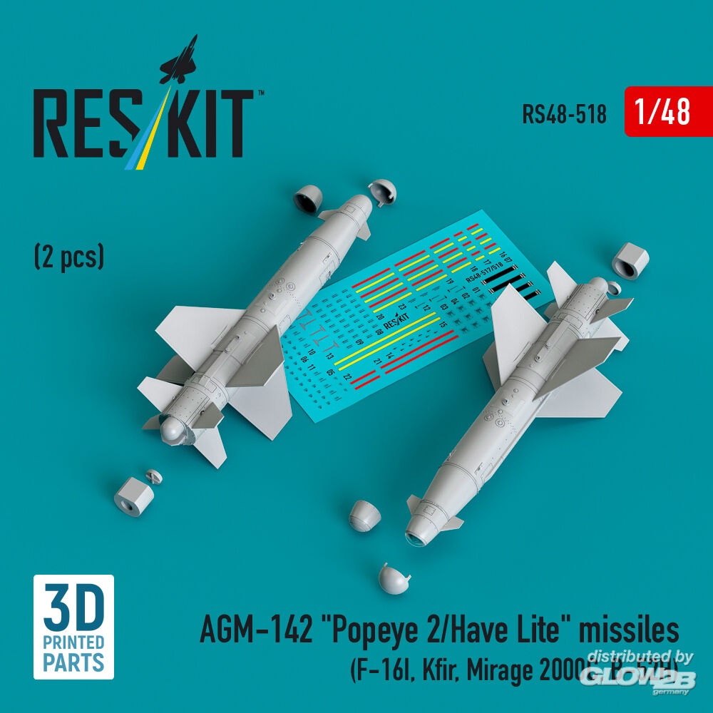 ResKit Models: AGM-142 Popeye 2/Have Lite missiles (2 pcs) (F-16I, Kfir, Mirage 2000C, B-52H) (3D Printed) in 1:48 [4594105189]