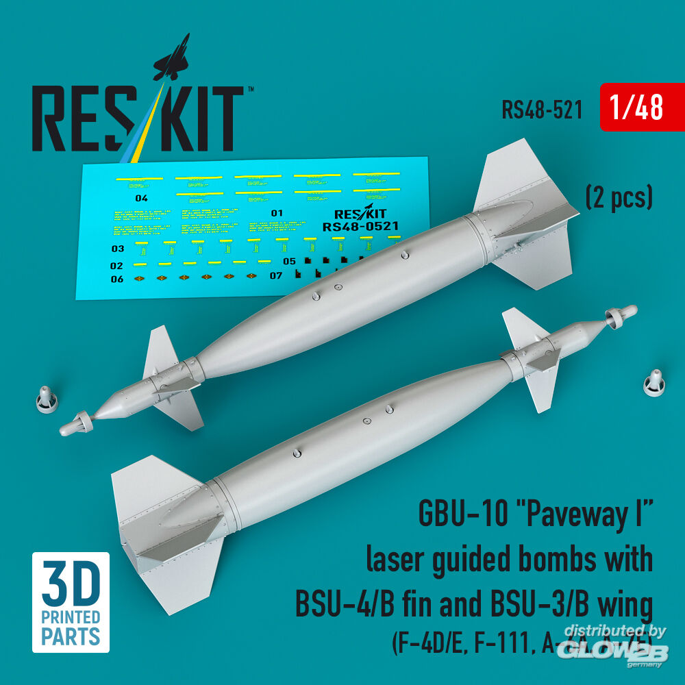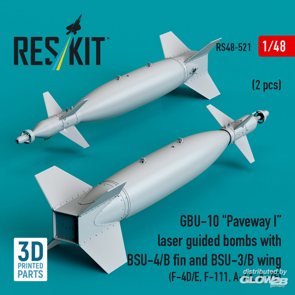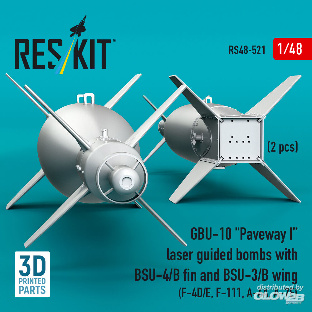 ResKit Models: GBU-10 Paveway I laser guided bombs with BSU-4/B fin and BSU-3/B wing (2 pcs) (F-4D/E, F-111, A-6A, A-7E) (3D Printed) in 1:48 [4594105219]
