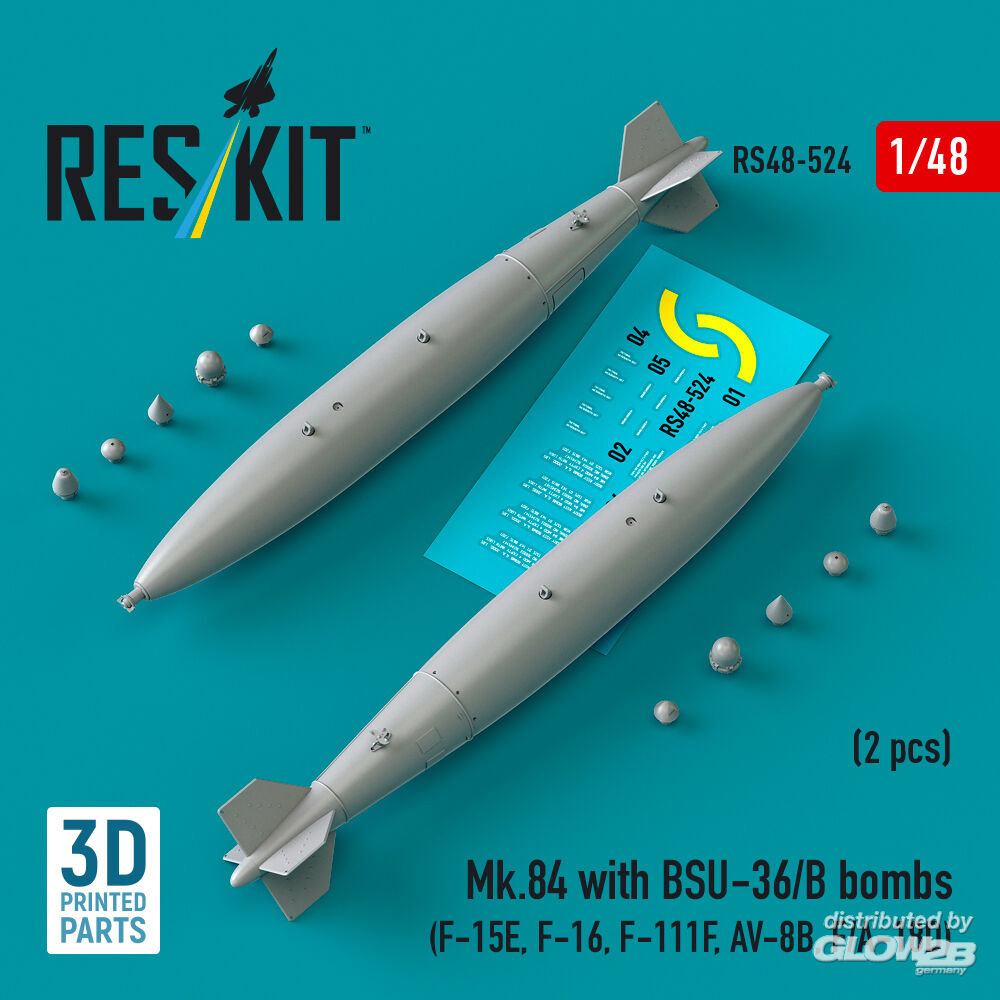 ResKit Models: Mk.84 with BSU-36/B bombs (2 pcs) (F-15E, F-16, F-111F, AV-8B, F/A-18D) (3D Printed) in 1:48 [4594105240]