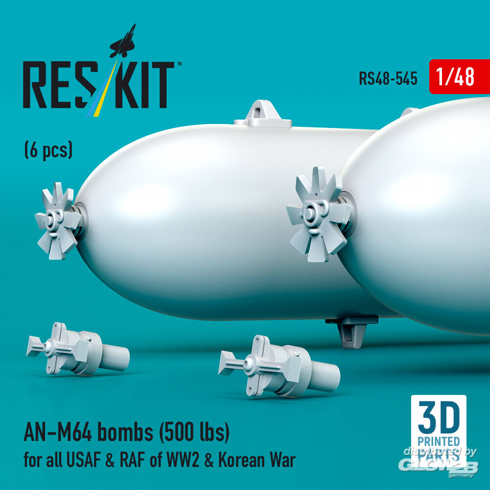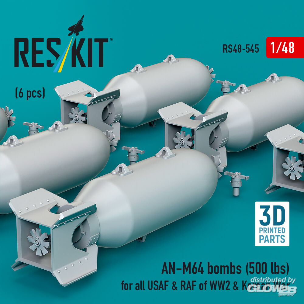 ResKit Models: AN-M64 bombs (6 pcs) (500 lbs) for all USAF & RAF of WW2 & Korean War (3D Printed) in 1:48 [4594105455]
