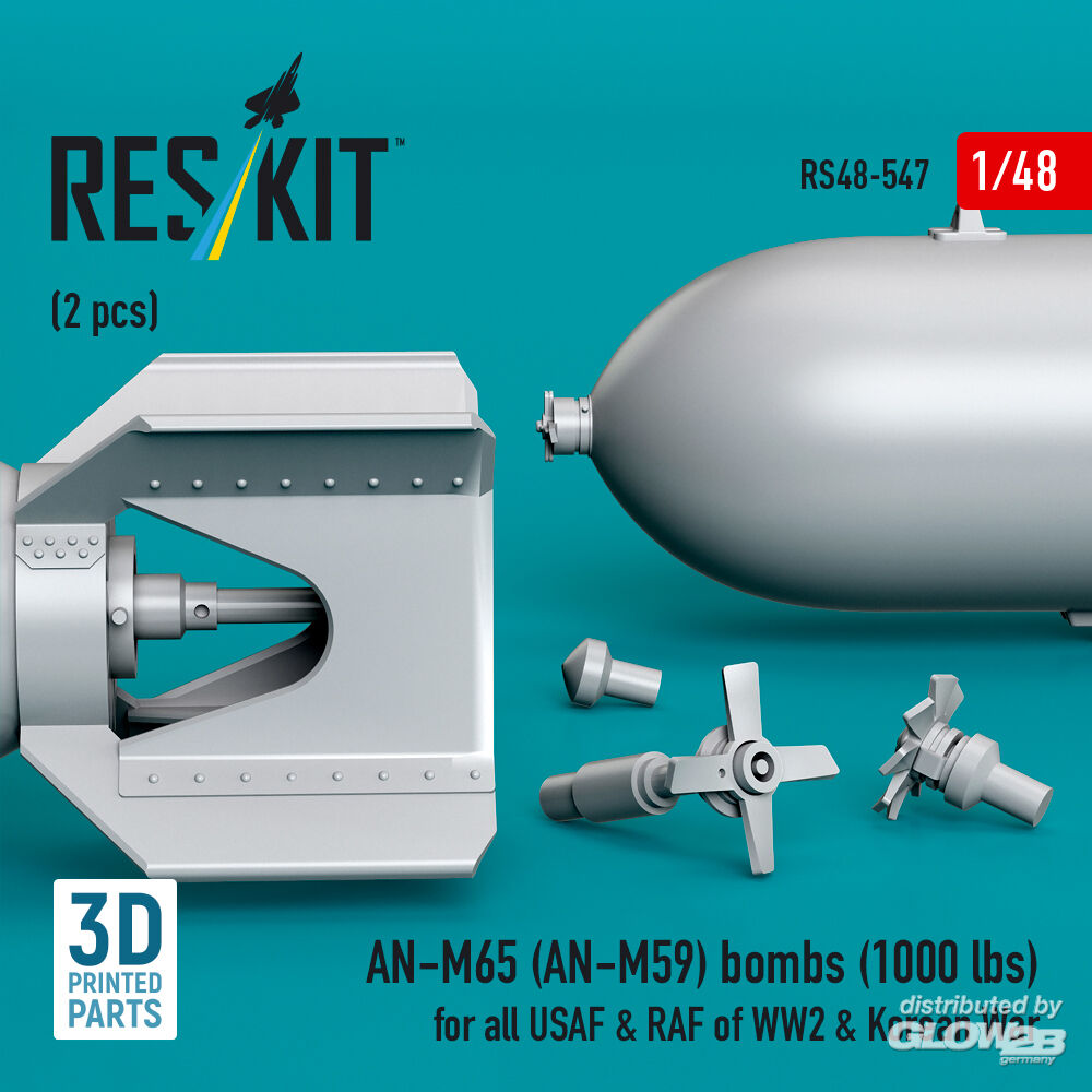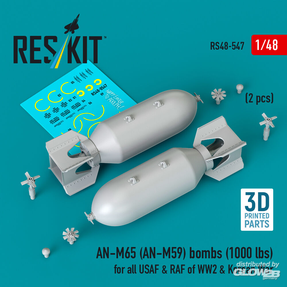 ResKit Models: AN-M65 (AN-M59) bombs (2 pcs) (1000 lbs) for all USAF & RAF of WW2 & Korean War (3D Printed) in 1:48 [4594105479]